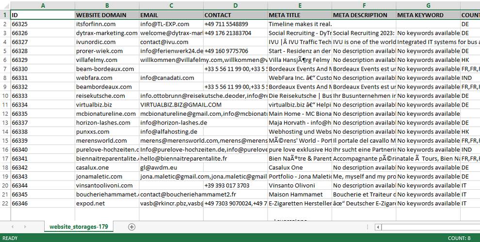 Once the extraction is complete, you’ll receive an organized list of all emails found. Our web scraping service provides clear results, allowing you to quickly review and utilize the website data scraper output for your needs.